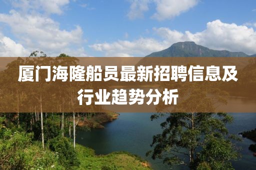 轉載請注明來自黑龍江隆康電力設備制造有限公司,本文標題:《廈門海隆船員最新招聘信息及行業趨勢分析》